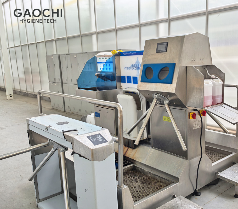 温州高驰科技人员卫生设施安装案例15年专注生产人员卫生领域为工业企业提供:人员洗消一体机、卫生清洁站、洗靴机、鞋底清洁机、入口消毒机、矿用洗靴机等产品。为食品车间入口、温室农业种植、电子半导体、矿业开采等领域提供标准化人员卫生解决方案,服务1000+企业的车间卫生建设。